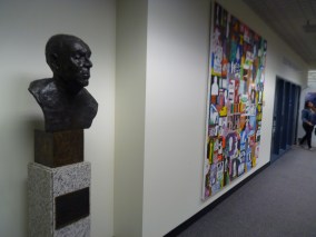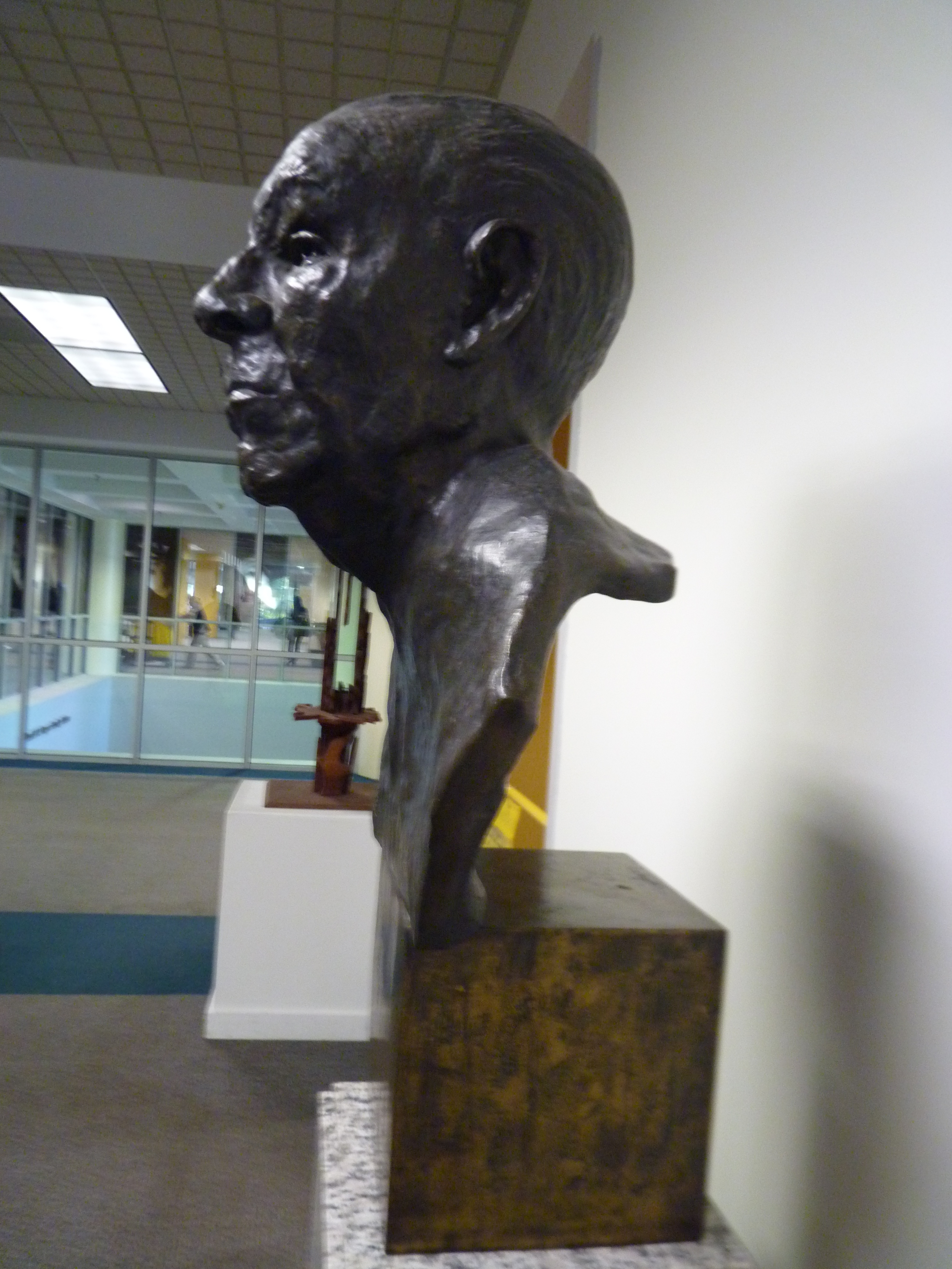 Allí está la estatua, una cabezota grande de bronce, en un pasillo del segundo piso de la biblioteca de FIU, y allí voy siempre y lo saludo.   Como saludo también a la bolita del mundo que hay arriba de un buró, siempre.  Creo que mis ángeles me oyen cuando les suplico que quiero conocer más de este mundo, y me regalan un viajecito de vez en cuando.
