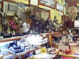 Tienda de artesanía local con un montón de estatuillas de quién, pues claro, del Quijote
