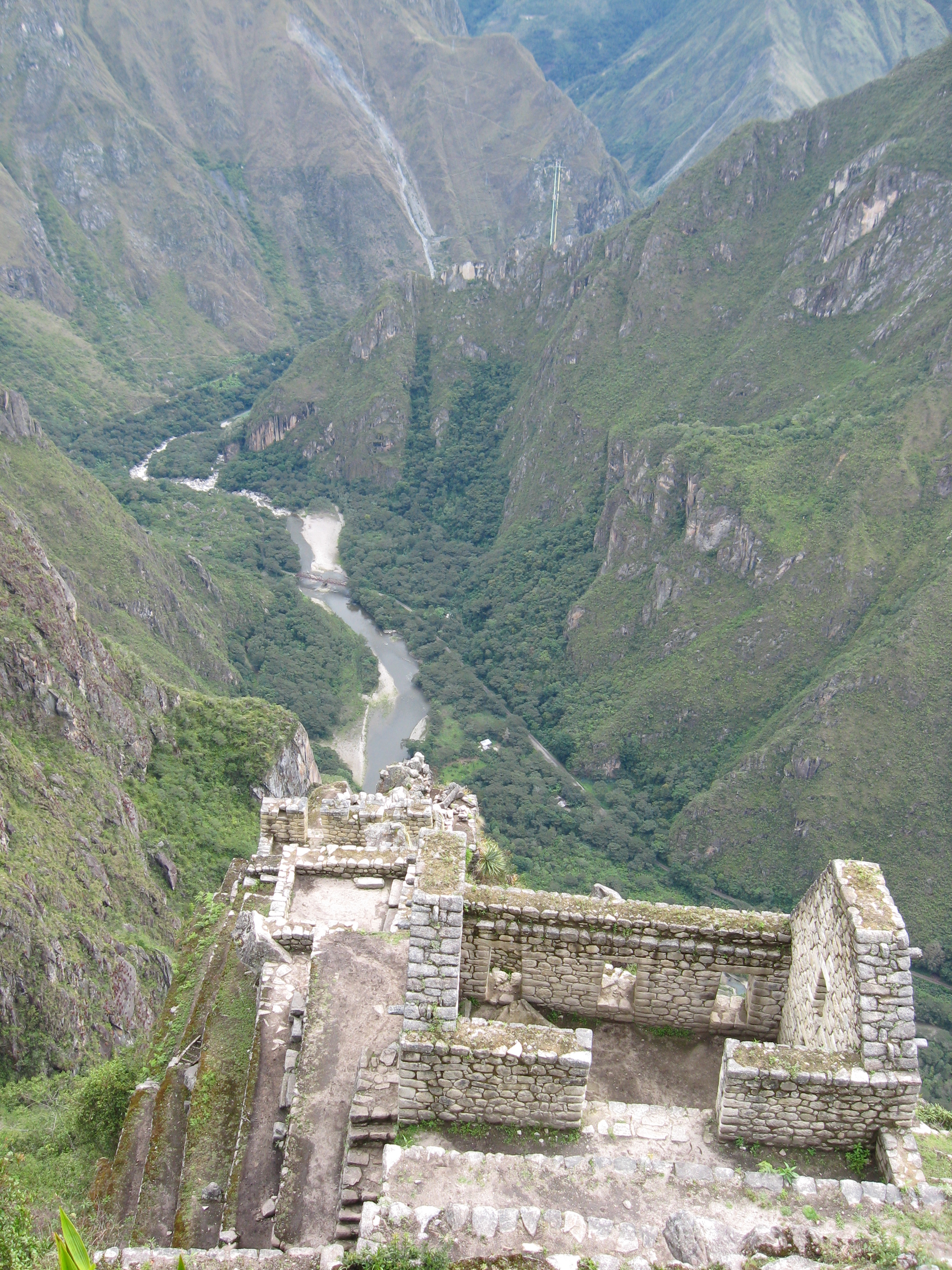 Río intramontañas de los Andes, desde lo alto del Wayna Picchu. El plateau de Machu Picchu quedaría un tanto a la izquierda, no visible en esta foto.