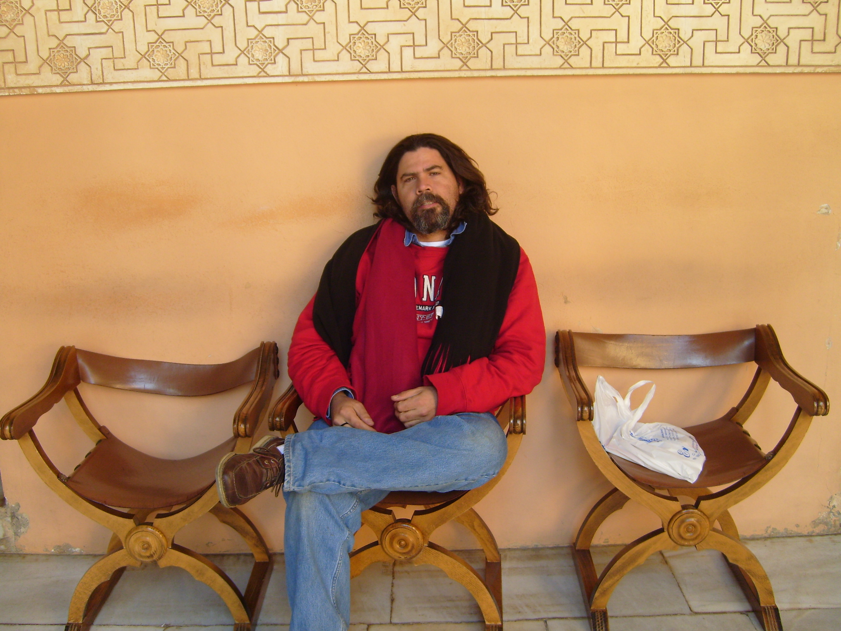 A la izquierda, el autor de estas estrofas, que nacieron apuradas, imperfectas, pero divinamente felices, al salir, repito, feliz, felicísimo (majmejorentodavía), muy feliz, ¡SUPER FELIZ!, de caminar toda la Alhambra de Granada, para regresar a Córdoba, y luego seguir manejando toda la fría noche, camino a Madrid.