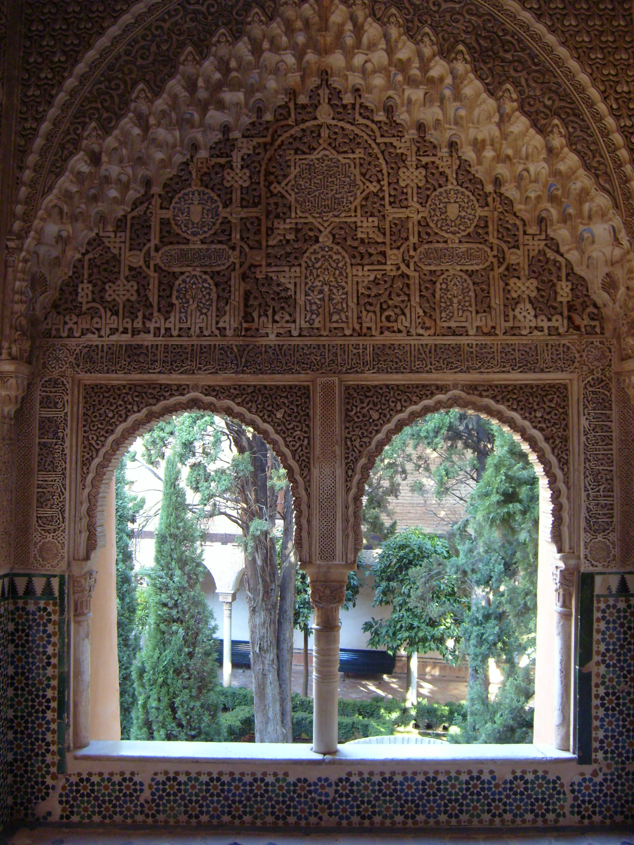 Cálida, serena, romántica, mi sutil ventana palaciega da al florido jardín de un bello patio andaluz.