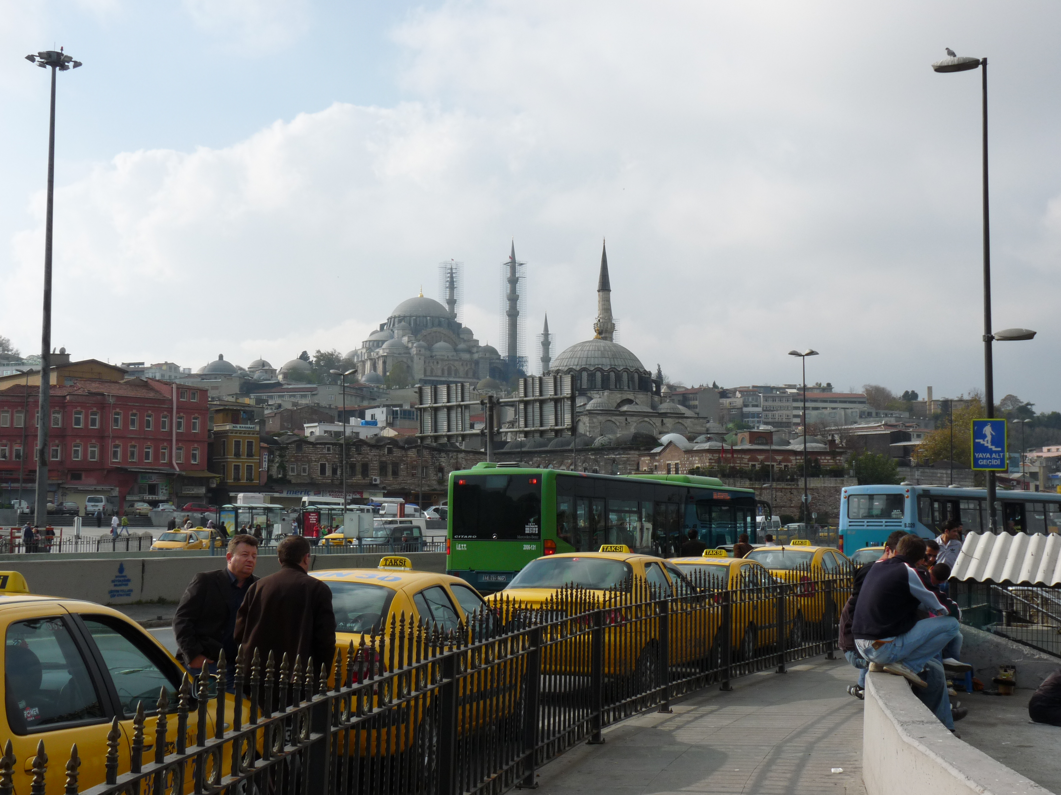 A la izquierda, una vista nocturna de la Gran Mezquita Catedral de Hagia Sophia (Ayasofia, o Santa Sabiduría), que es uno de los templos religiosos más impresionantes que haya visto en esta vida. A la derecha, caminando desde el barrio de Taksim, donde me estaba quedando, por el puente Galata, hacia la Vieja Estambul, llego a visitar la Gran Mezquita de Suleymaniye. ¡Igual de impresionante!